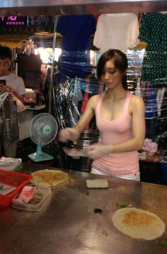 抓拍摊饼店的极品美女老板秀美胸!我每次都会来买她的饼哦(1)